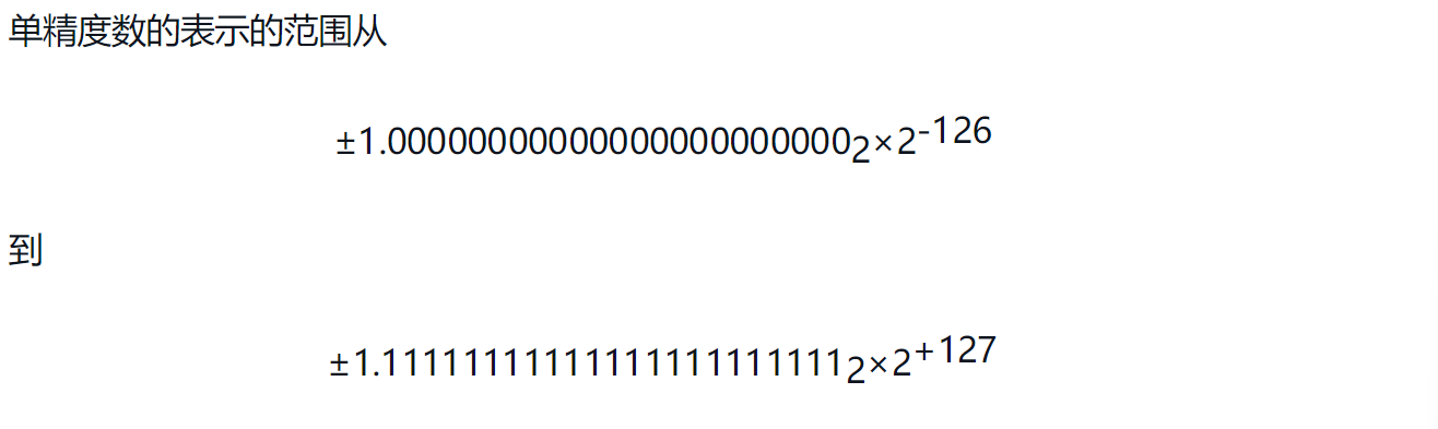 要注意的是,浮点数的表示范围和补码表示的定点数的表示范围是有所不同的,定点数的表示范围是连续的,而浮点数的表示范围可能是不连续的。