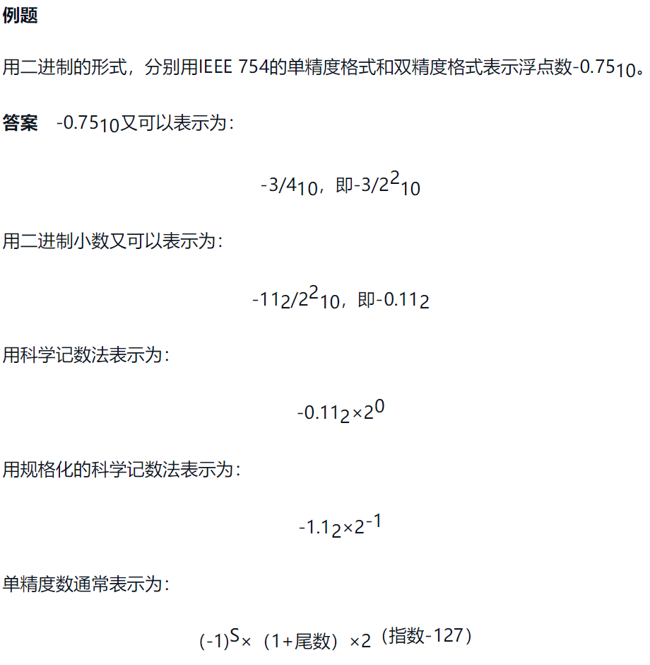 例外:0以及非规格化数没有前导1,IEEE 754通过将所有的指数位都设置为0来表示这是一个0(或非规格化数),此时隐含的前导1就会消失