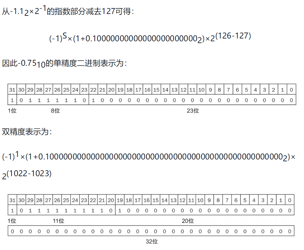 如指数-1表示为-1+127${10}$,指数1表示为1+127${10}$