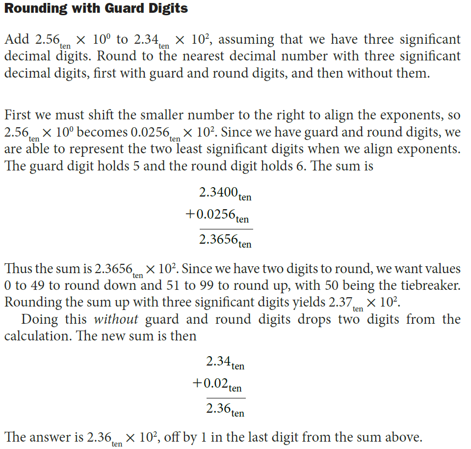所以设置guard, round的目的就是强制多保留2位,以防过早地舍入而导致精度损失;