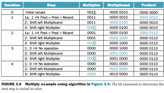 a) 从上面的手工计算示例中可以清楚地看到,我们需要在每一步计算中 将被乘数左移一位 ,因为它可能会和之前的中间结果相加。然后需要 把乘数右移一位 ,以对齐下一个0或1。