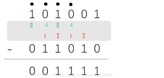 绿字共有两种取值:若当前位本来是0,被低位借1后就变成-1;若本来是1,被低位借1后就变成0)