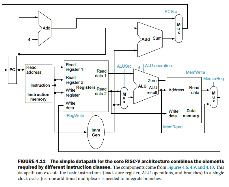 组合不同类型指令所需的功能单元,形成RISC-V指令系统的简单数据通路