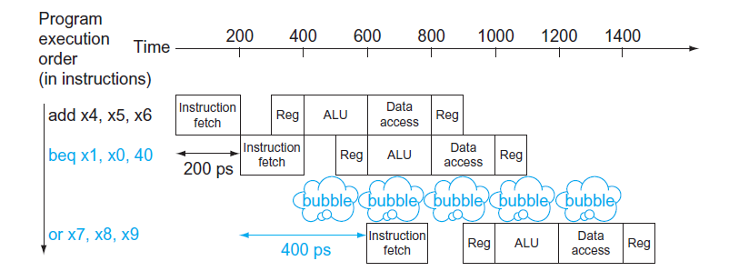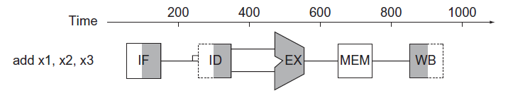 如图,Reg执行阶段消耗了200ps的时间(等于最长的ALU或Data access时间),尽管它本身不需要这么久;