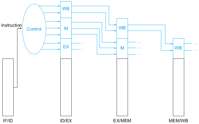 WB、M、EX分别是按组分好后的控制信号(ID、IF无需控制信号,不用传递)