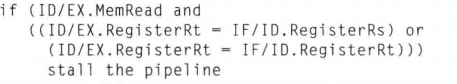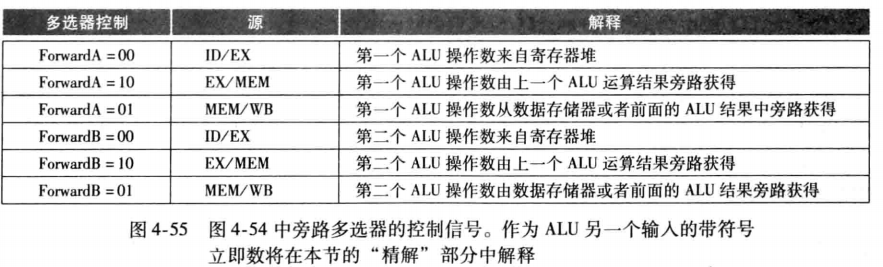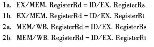 - 后面的两行是检测在 EX 级的装载指令的目的寄存器是否与在 ID 级的指令的某个源寄存器相匹配