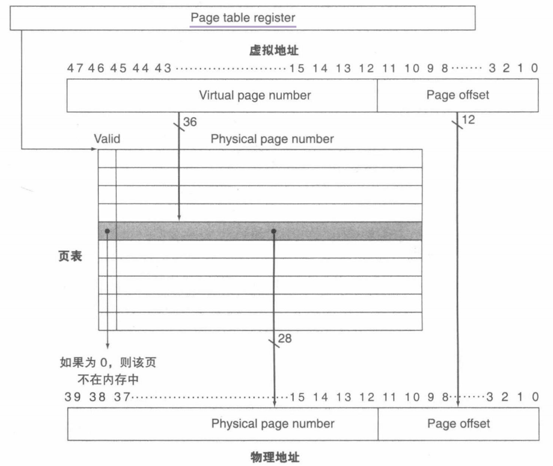 一个页表项(page table entry)包含两部分:valid bit和 物理页号,后者和继承自虚拟地址的offset一起构成了物理地址;