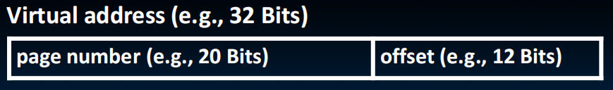 - 虚拟地址(virtual address)由 20-bit虚拟页号 和12-bit偏移量 组成