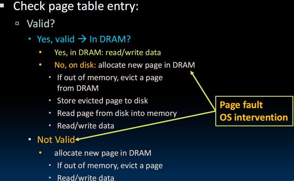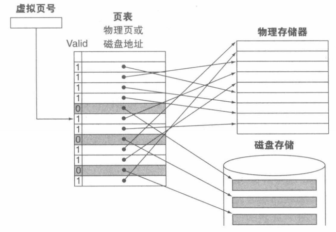 - 如果虚拟页的valid bit为无效,则发生缺页失效;
