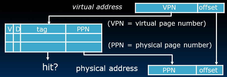 TLB进行虚拟地址到物理地址的转换(而不是页表)