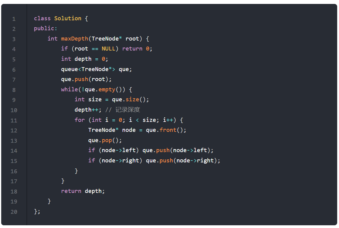 depth++; // 记录最小深度